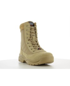 The robust DUNE safety boots offer SR slip resistance, tested on steel and ceramic surfaces, ensuring a firm grip on any terrain, and are equipped with a zipper. The antistatic technology maintains an optimal balance of electrical charges, while the breathable upper ensures your feet stay cool and fresh. Designed to provide relief from body posture pain, adapt to the natural shape of your feet, and endure hot surfaces, these shoes are a boon for those in the tactical industry, especially for operations in dry and uneven surfaces. The outsole guarantees a firm foothold on surfaces such as sand, stones, snow or mud.